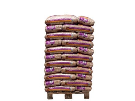 Agrofino houtpellets geleverd op pallet van 990 kg. Deze pellets zijn gemaakt van samengeperst naaldhout zonder chemische toevoegingen en zorgen voor een efficiënte en gelijkmatige verbranding.